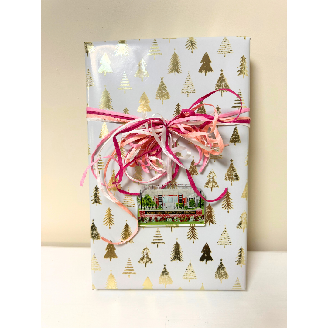 Bring the Crimson Tide spirit to your holiday season with this unique University of Alabama acrylic ornament! Inspired by Jeanne Player’s original Saban Field artwork, this lightweight ornament (just 1 oz) is cut into a custom shape and measures 4 x 2.5 inches. Each design is printed on premium paper, transferred onto clear acrylic for durability, and finished with an adjustable satin ribbon for effortless hanging.