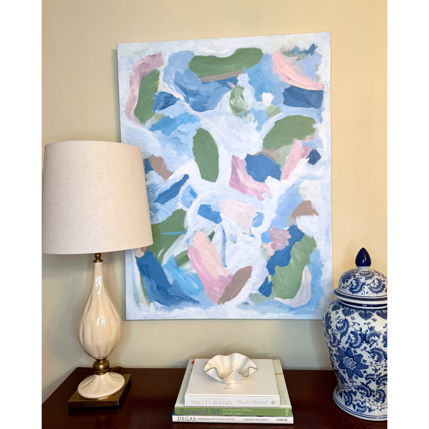 Bring refined color, movement, and joy into your home with Celebrations, a large original abstract painting created to make a sophisticated statement. This layered, expressive work blends painterly brushstrokes with soft transitions of color, creating a piece that feels both modern and timeless.
