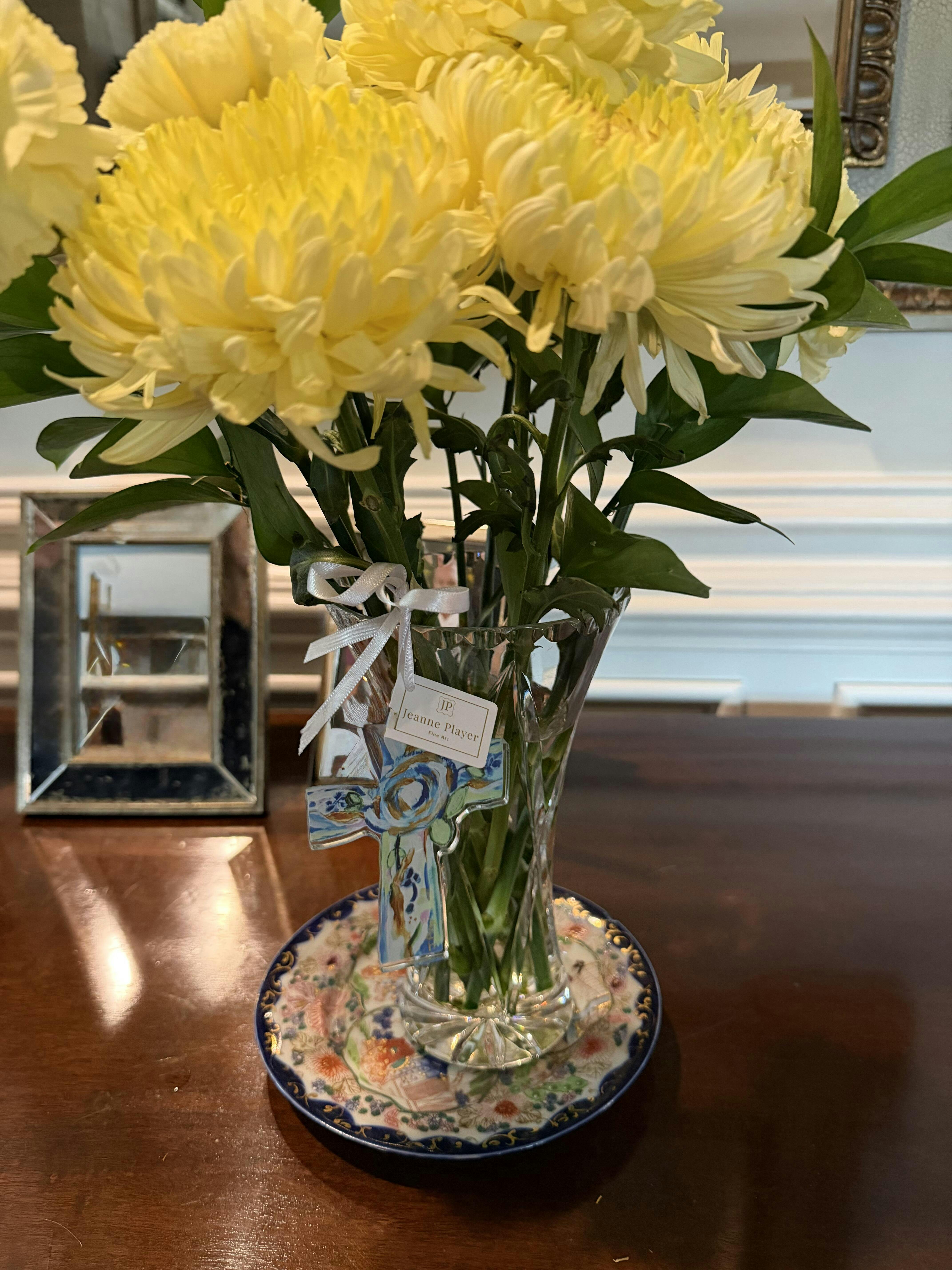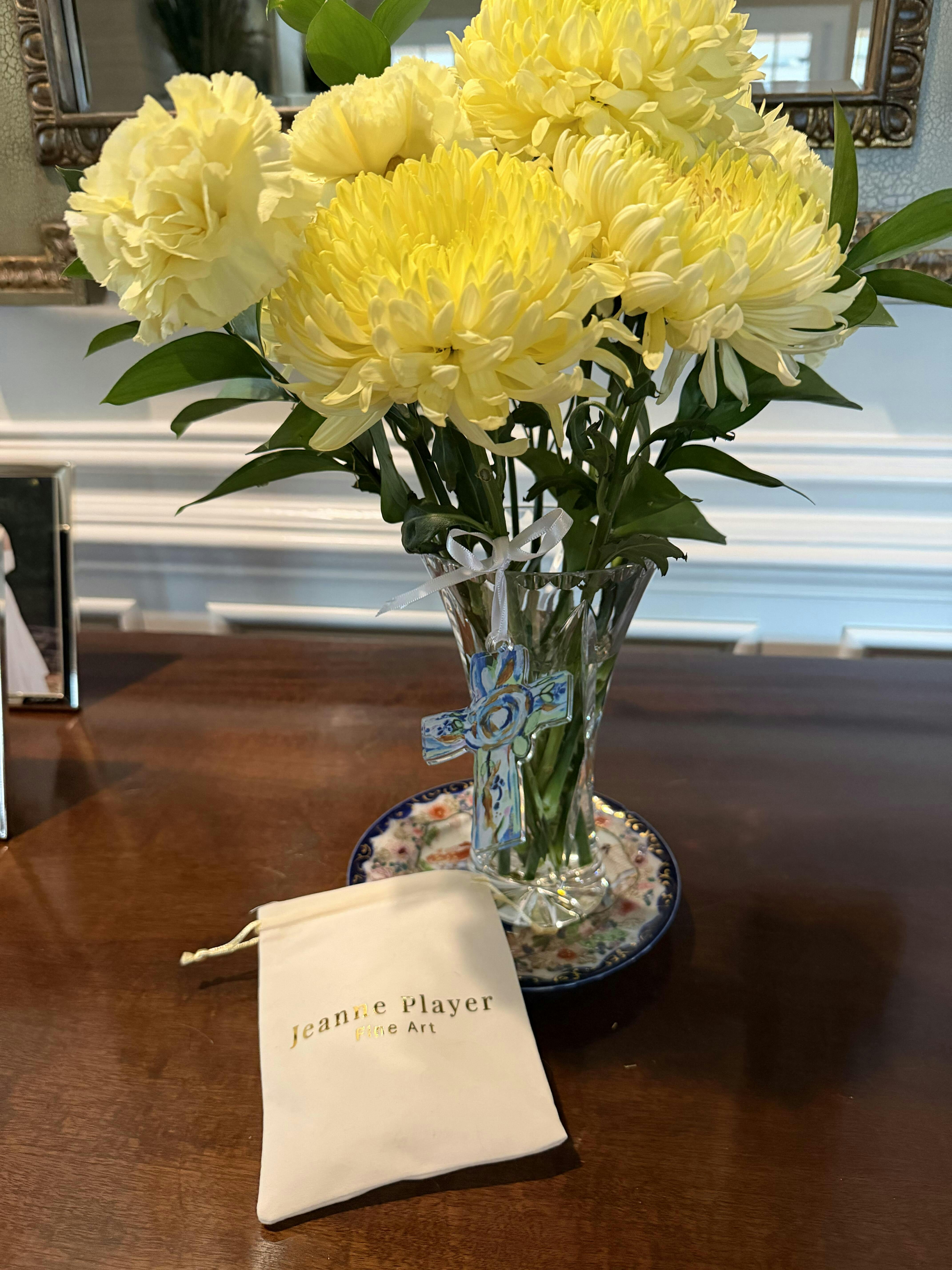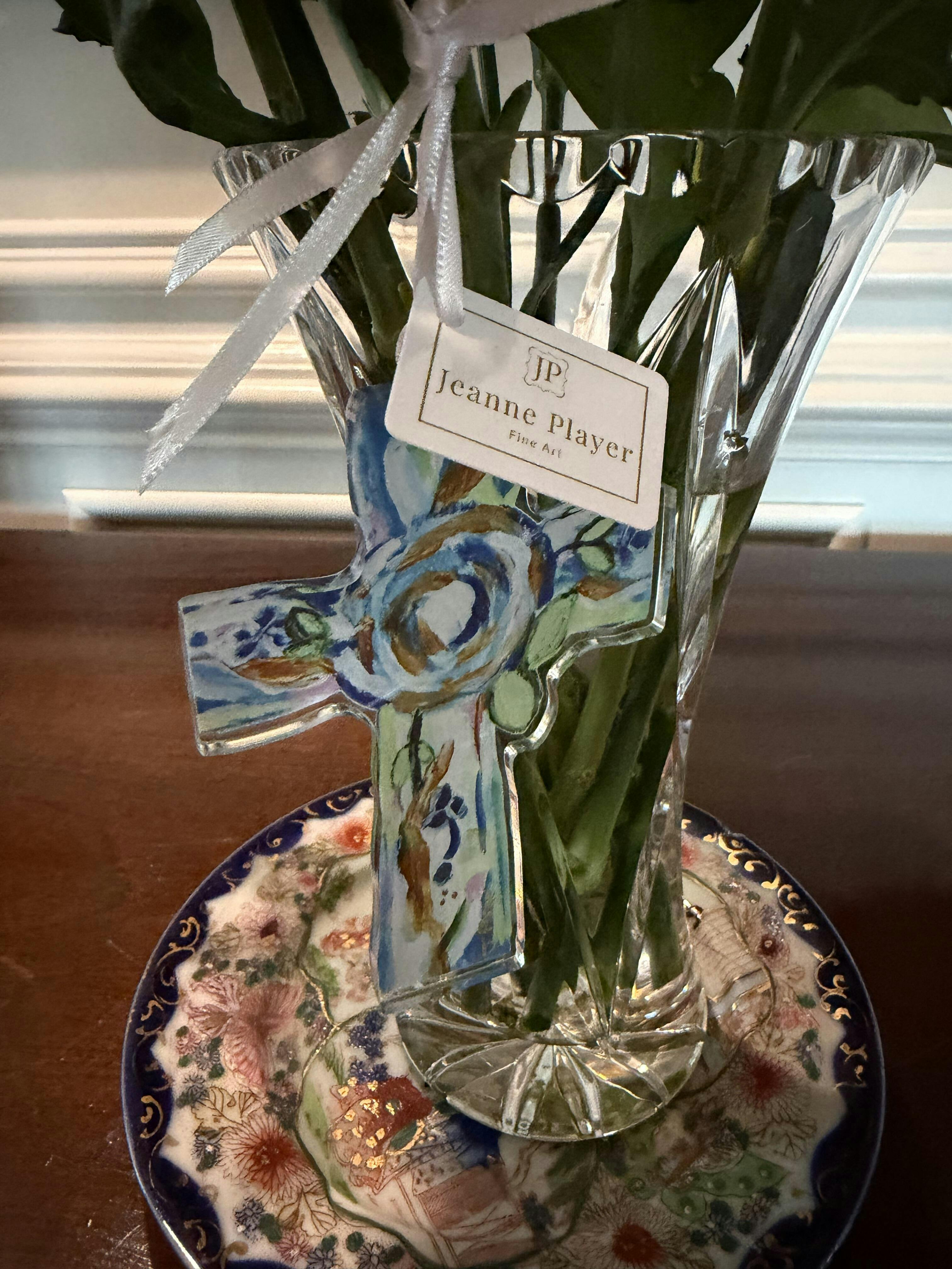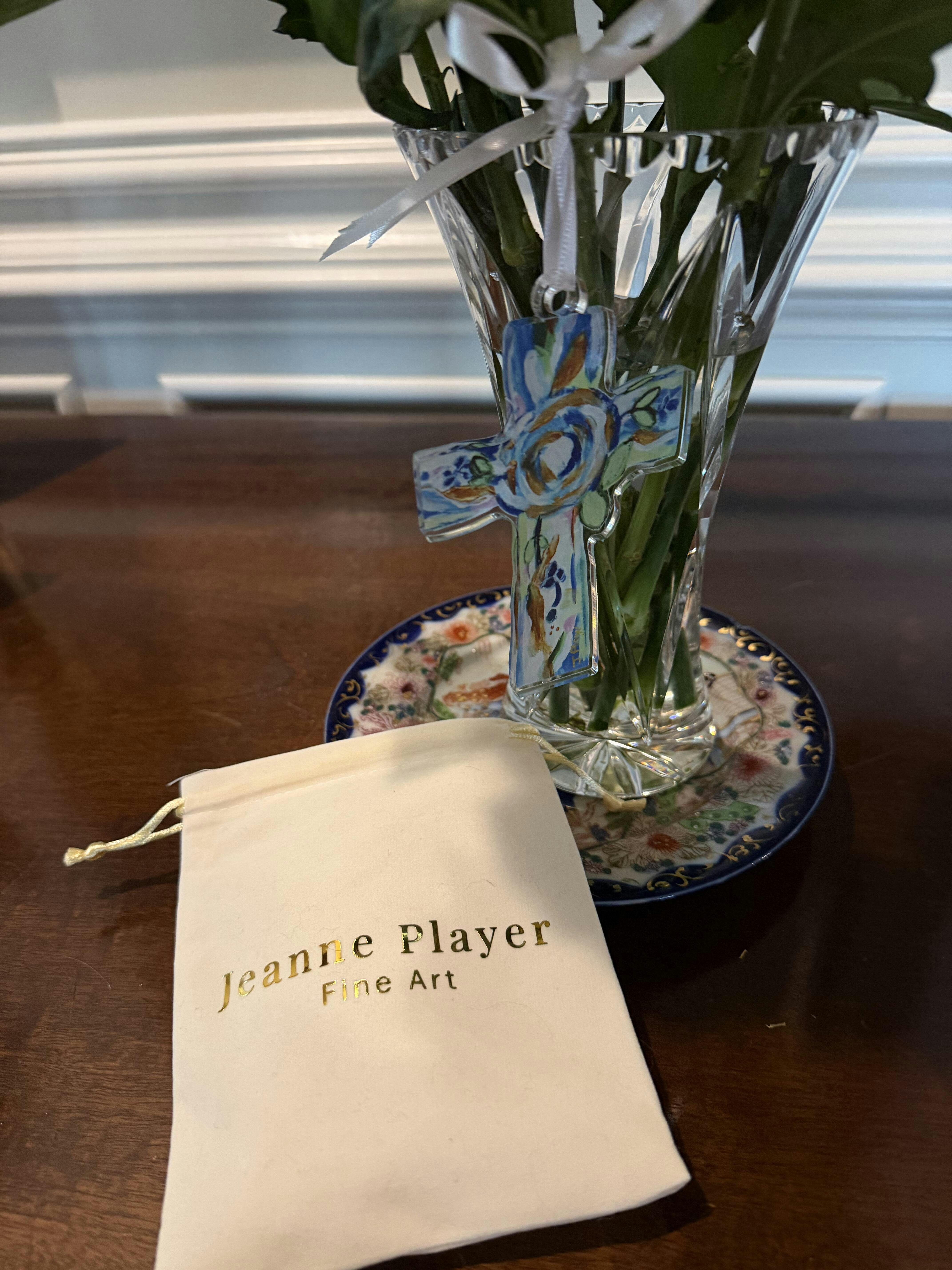 Celebrate the season with faith and beauty through the Hope Cross Ornament by Jeanne Player Fine Art. Inspired by Jeanne’s original abstract floral cross painting, this ornament shines in vibrant shades of blue, green, gold, and white—a joyful reminder of hope and Christian inspiration during Christmas.